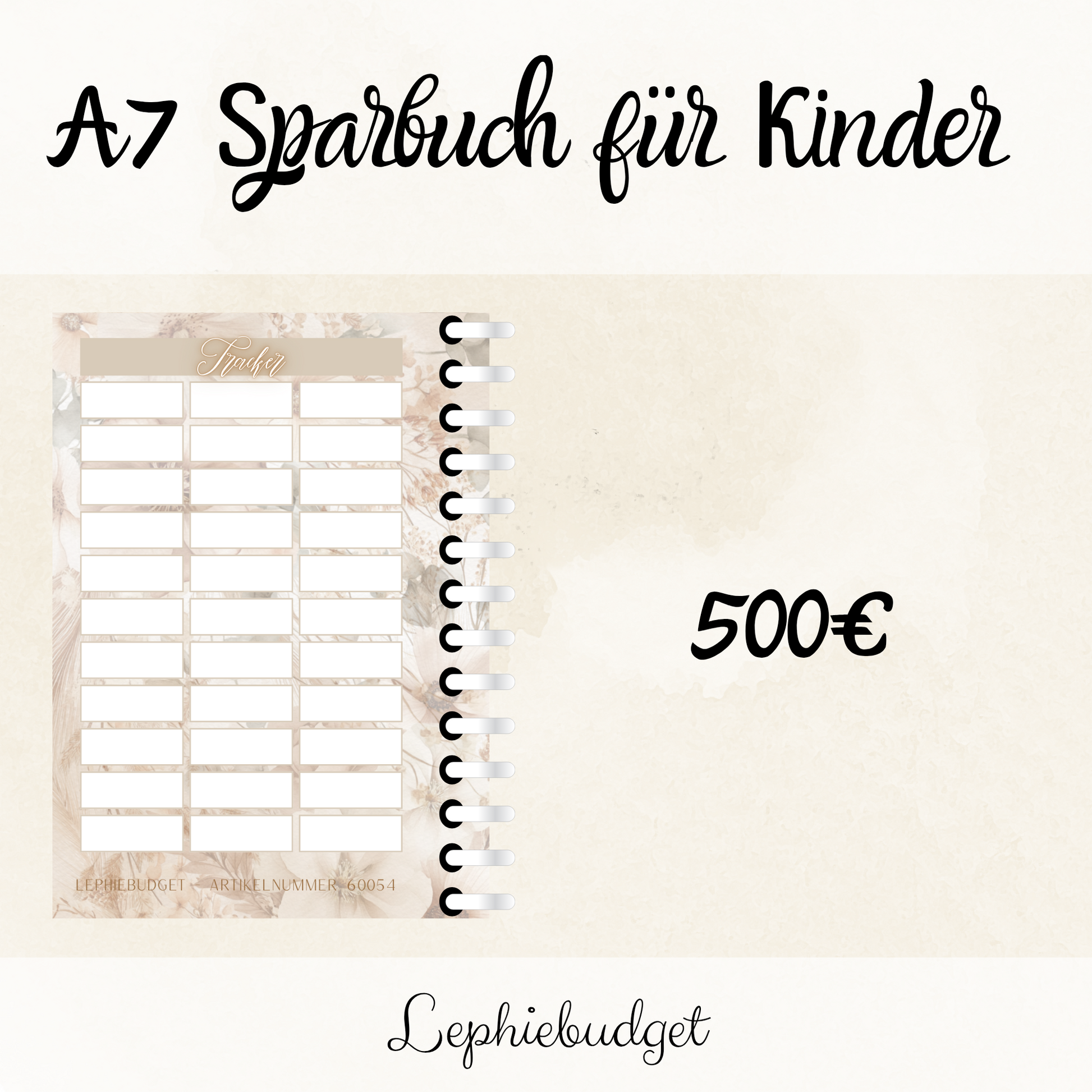 Ein Kinder Sparbuch, womit man 500 Euro sparen kann mit den unterschiedlichsten Challenges.